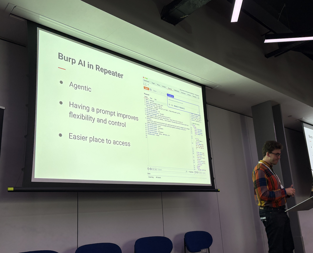These new capabilities were shared at HAC NYC in Burp AI Product Manager Katie Warren’s talk ‘AI in Application Security: Our Journey to AI’, and HAC LDN and FOST Paris with Burp AI developer Daniel Allen’s ‘Agents at the Gate: How Agentic AI is Changing the Security Landscape’.