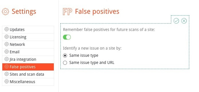 You can also configure whether false positives are remembered in future scans, and whether to match new issues by type and URL:
